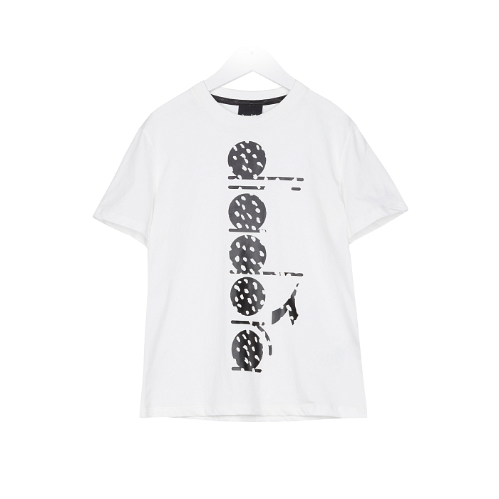 Футболка Diadora – это отличный выбор для девочек! Изготовленная из 100% хлопка, она украшена оригинальным принтом с черными точками на белом фоне. Принт выполнен в стиле Diadora, создавая уникальный и модный образ. Футболка с круглым вырезом горловины и короткими рукавами подойдет для девочек любого возраста. На фотографии видна аккуратная текстура ткани и четкий принт. Качество от итальянского бренда Diadora делает эту футболку отличным выбором для вашего ребенка!