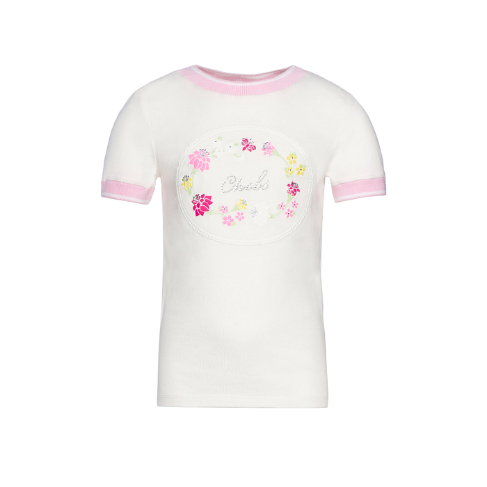 Футболка Chobi – это идеальный выбор для маленьких модниц! Изготовленная из 98% хлопка и 2% эластана, она украшена очаровательным цветочным принтом в центре. Футболка с эластичными манжетами по рукавам и горловине создает комфорт и стиль. Нежная белая основа с яркими цветами и блестящими элементами создает игривое и в то же время элегантное настроение. На фотографии видна аккуратная отделка по краю и мягкая текстура ткани. Качество от российского бренда и внимание к деталям делают эту футболку отличным выбором для вашего ребенка!