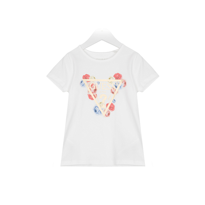 Футболка Guess – это идеальный выбор для маленьких модниц! Изготовленная из 95% хлопка и 5% эластана, она украшена ярким принтом из цветов и логотипом Guess. Нежная белая основа с красными, розовыми и синими цветами и логотипом Guess создает яркий и стильный образ. На фотографии видна аккуратная вышивка цветов и логотипа Guess в центре футболки. Качество от бренда из Индии и внимание к деталям делают эту футболку отличным выбором для вашего ребенка!