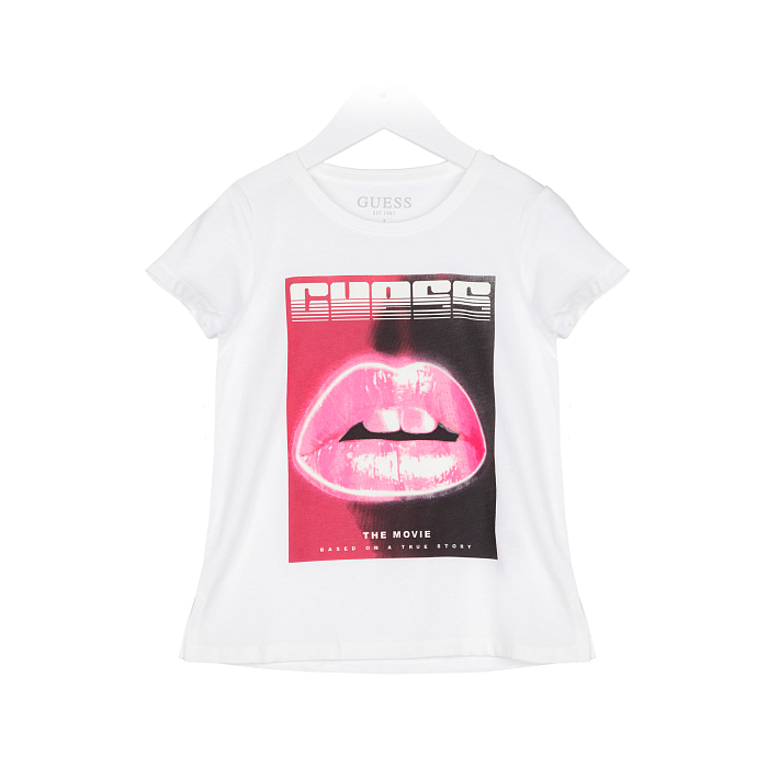 Футболка Guess – это идеальный выбор для стильных девочек! Изготовленная из 60% хлопка и 40% модала, она украшена ярким принтом с розовыми губами и логотипом Guess. Нежная белая основа с красочным принтом создает яркий и современный образ. На фотографии видна аккуратная окантовка по краю и мягкая текстура ткани. Качество от бренда из Индии и внимание к деталям делают эту футболку отличным выбором для вашего ребенка!