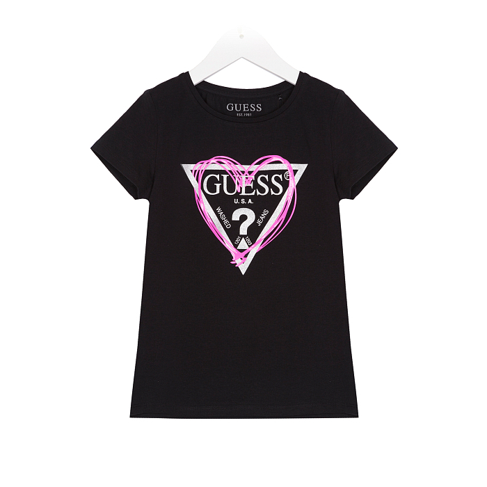 Футболка Guess – это идеальный выбор для девочек! Изготовленная из 95% хлопка и 5% других волокон, она украшена ярким принтом сердца и логотипом Guess. Футболка идеально подходит для повседневной носки и создает стильный образ. На фотографии видна аккуратная вышивка сердца и логотип Guess, а также мягкая текстура ткани. Качество от бренда из США делает эту футболку отличным выбором для вашего ребенка!