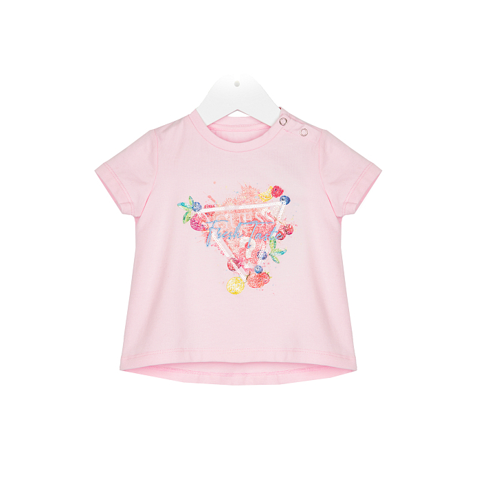 Футболка Guess – это идеальный выбор для девочек! Изготовленная из 95% хлопка и 5% других волокон, она украшена ярким принтом с фруктами и надписью Fresh Taste. Нежная розовая основа с красочными фруктами и яркой надписью создает веселое и уютное настроение. На фотографии видна аккуратная вышивка и мягкая текстура ткани. Качество от бренда из США и внимание к деталям делают эту футболку отличным выбором для вашего ребенка!