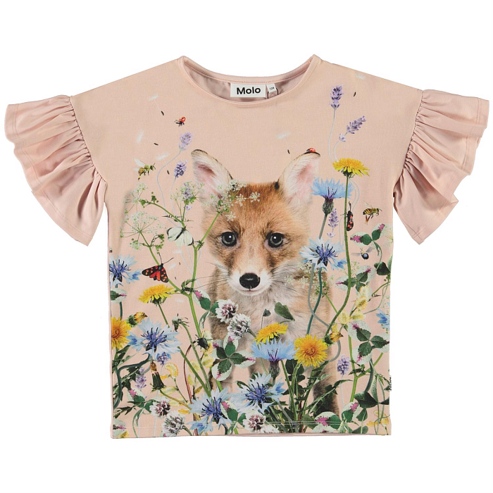 Футболка Molo – это идеальный выбор для девочек! Изготовленная из 95% органического хлопка и 5% эластана, она украшена очаровательным принтом с милой лисой и разноцветными цветами. Нежная розовая основа с яркими деталями создает нежное и в то же время веселое настроение. На фотографии видна аккуратная розовая окантовка по краю и мягкая текстура ткани. Качество от бренда из Дании и внимание к деталям делают эту футболку отличным выбором для вашего ребенка!