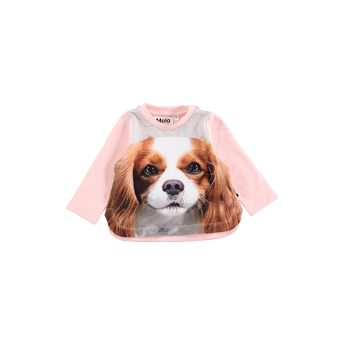 Джемпер Molo – это идеальный выбор для девочек! Изготовленный из 95% хлопка и 5% эластана, он украшен очаровательным принтом собаки. Нежная текстура ткани и удобная посадка создают комфорт и уют. На фотографии видна аккуратная розовая окантовка по краю и мягкая текстура ткани. Качество от бренда из Украины и внимание к деталям делают этот джемпер отличным выбором для вашего ребенка!