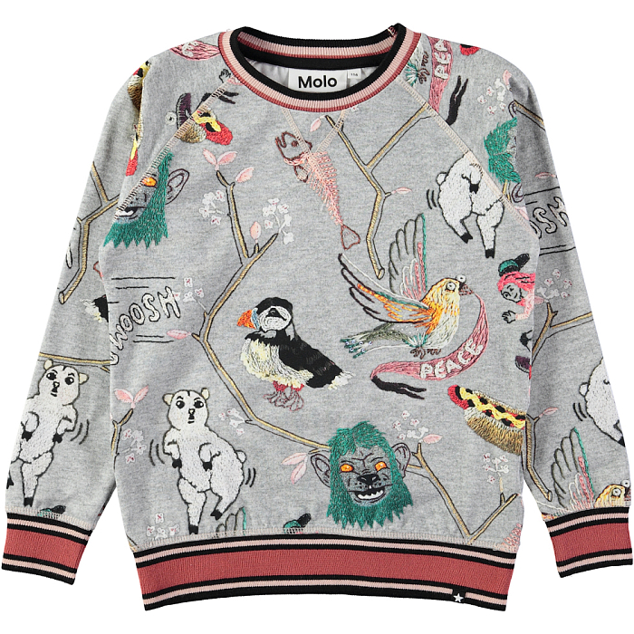 Джемпер Molo – это идеальный выбор для маленьких модниц! Изготовленный из 95% хлопка и 5% эластана, он украшен вышивкой животных и птиц. Серый базовый цвет с яркими вышитыми деталями создает стильный и неповторимый образ. На фотографии видны различные животные, птицы и даже мультяшные персонажи, которые делают этот джемпер настоящим произведением искусства. Качество от бренда из Украины и внимание к деталям делают эту вещь отличным выбором для вашего ребенка!