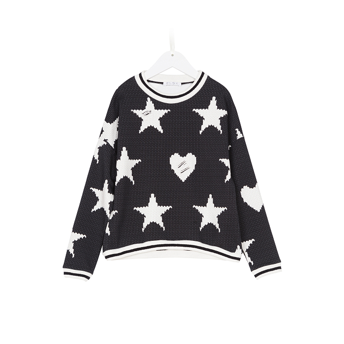 Джемпер Elsy – это идеальный выбор для девочек! Изготовлен из комбинации 93% хлопка и 7% эластана, а также 48% хлопка и 48% акрила с 4% эластана. Джемпер украшен очаровательными белыми звездами и сердечками на черном фоне. Нежная фактура ткани и удобная посадка делают этот джемпер комфортным и стильным выбором для вашего ребенка. На фотографии видны аккуратные белые контрастные звезды и сердечки, а также мягкая текстура ткани. Качество от итальянского бренда Elsy и внимание к деталям делают эту модель отличным выбором для вашего ребенка!