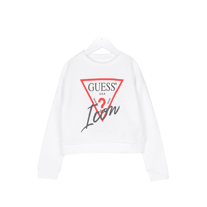 Джемпер Guess – это идеальный выбор для девочек! Изготовленный из 100% хлопка и 5% эластана, он украшен ярким принтом логотипа Guess и надписью Icon. Нежная белая основа с черными и красными акцентами создает модный и уютный образ. На фотографии видна аккуратная черная контрастная окантовка по краю и мягкое воротничное кольцо. Качество от бренда из Индии и внимание к деталям делают этот джемпер отличным выбором для вашего ребенка!