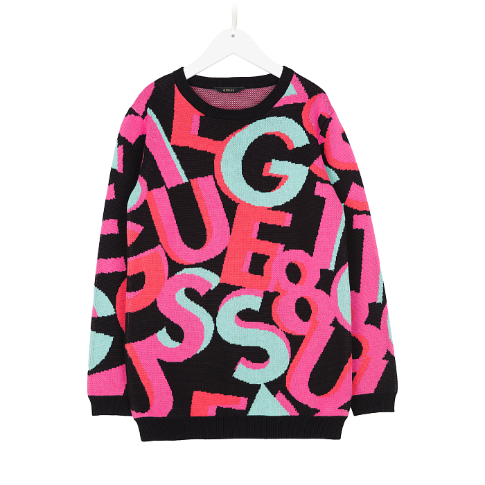 Джемпер Guess – это идеальный выбор для девочек! Изготовленный из 100% хлопка, он украшен ярким принтом с крупными буквами "Guess" в ярких цветах на черном фоне. Нежная текстура ткани и удобная посадка делают этот джемпер комфортным и стильным. На фотографии видна аккуратная окантовка по краю и мягкая текстура ткани. Качество от бренда из Китая и внимание к деталям делают эту модель отличным выбором для вашего ребенка!