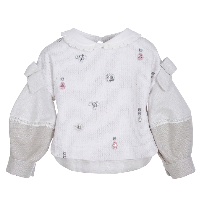 Джемпер для девочек Lapin House – это идеальный выбор для стильных и комфортных выходов! Изготовленный из 57% хлопка, 38% полиэстера, 3% вискозы и 2% эластана, он украшен изящными вышивками и бантиками на плечах. Белый цвет создает нежное и элегантное настроение. На фотографиях видны аккуратные вышивки в виде цветов и бабочек, а также мягкие бантики на плечах, которые придают модели особую мягкость и уют. Качество от бренда из Греции и внимание к деталям делают этот джемпер отличным выбором для вашего ребенка!
