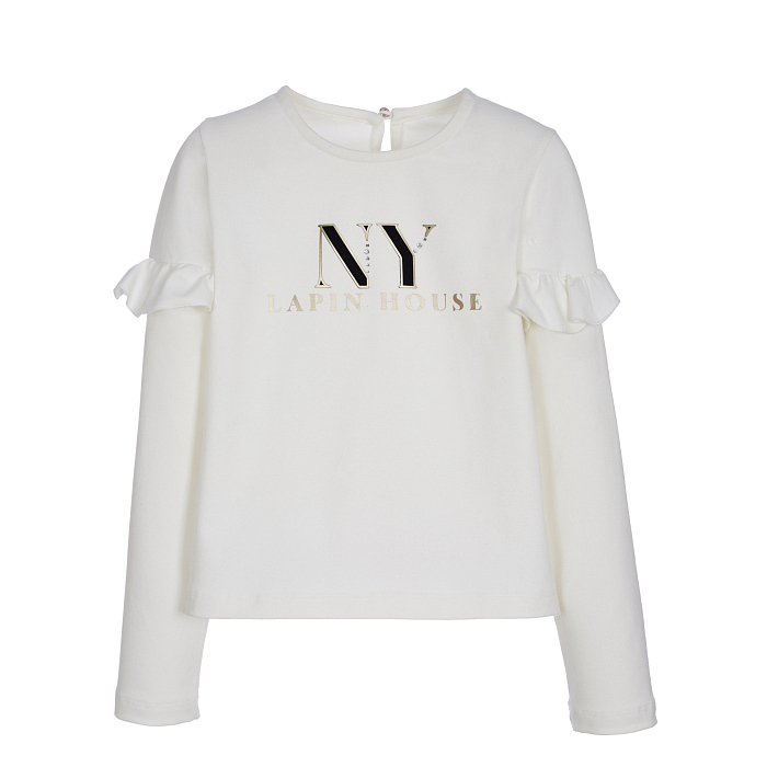 Джемпер для девочек Lapin House – это идеальный выбор для стильных и комфортных образов! Изготовлен из 92% хлопка и 8% эластана, он дополнен элегантными рукавами-фонариками и логотипом NY Lapin House. Нежная белая основа с золотистым логотипом создает стильный и современный образ. На фотографии видна аккуратная отделка рукавов и мягкая текстура ткани. Качество от бренда из Греции и внимание к деталям делают этот джемпер отличным выбором для вашего ребенка!