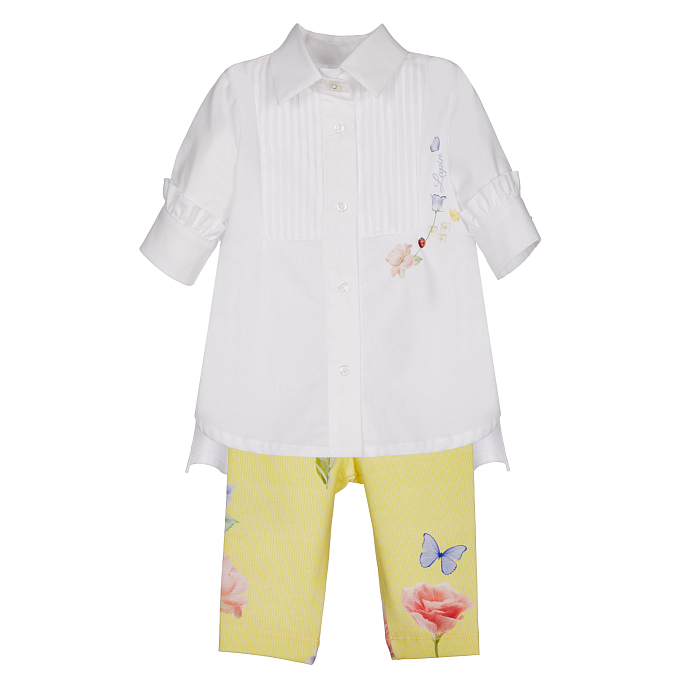 Комплект блуза и брюки Lapin House – идеальный выбор для девочек! Блуза белая с роскошным цветочным принтом на рукавах и брюках. Брюки желтые с изящными розами и бабочками. Комплект выполнен из 98% хлопка + 2% лайкра, 95% хлопка + 5% лайкра, обеспечивая комфорт и мягкость. Блуза с отложным воротником и рукавами на манжетах, брюки с эластичной резинкой по талии. Качество от бренда из Греции и внимание к деталям делают этот комплект отличным выбором для вашего ребенка!