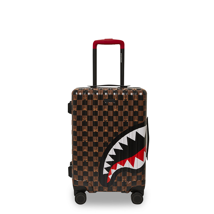 Чемодан Sprayground с коричневым принтом джунглей и черными квадратами – это идеальный выбор для путешествий! Изготовлен из прочного 100% поликарбоната и подкладки из 100% полиэстера, он обеспечивает надежную защиту ваших вещей. Принт джунглей с черными квадратами придает чемодану уникальный и современный вид. На фотографиях видна прочная ручка, удобные колеса и надежная застежка. Качество от бренда из США делает этот чемодан отличным выбором для путешествий!