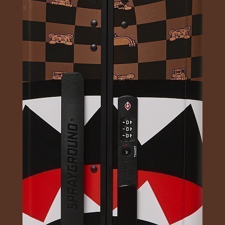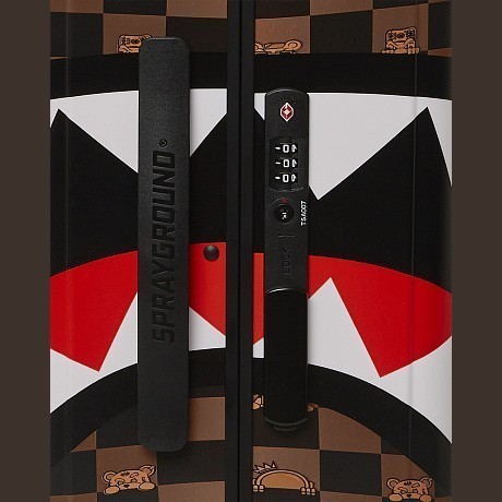 Чемодан Sprayground с коричневым принтом джунглей и черными квадратами – это идеальный выбор для путешествий! Изготовлен из прочного 100% поликарбоната и подкладки из 100% полиэстера, он обеспечивает надежную защиту ваших вещей. Принт джунглей с черными квадратами придает чемодану уникальный и современный вид. На фотографиях видна прочная ручка, удобные колеса и надежная застежка. Качество от бренда из США делает этот чемодан отличным выбором для путешествий!