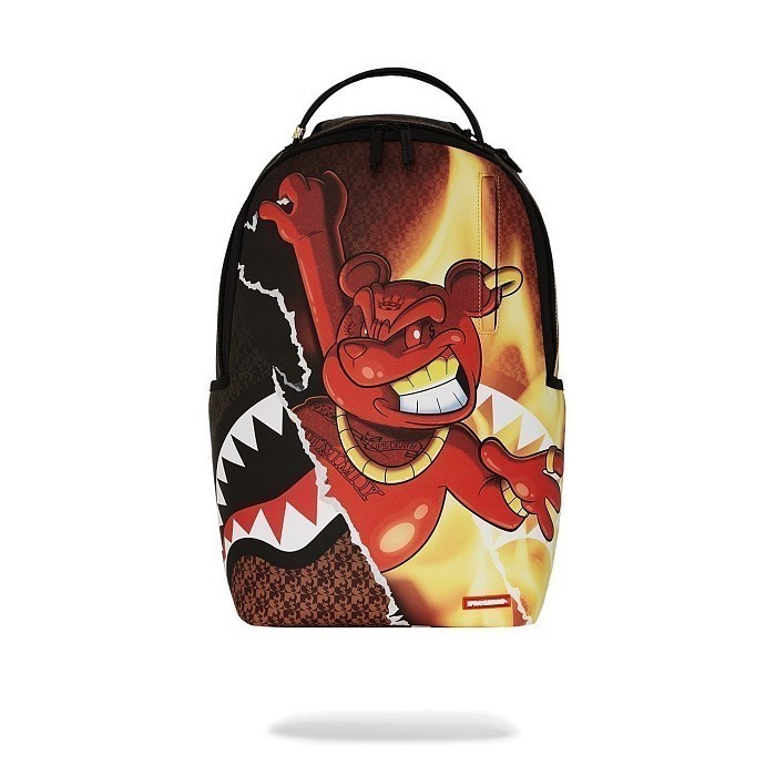 Рюкзак Sprayground – это идеальный выбор для девушек! Изготовленный из 100% поливинилхлорида и подкладки из полиэстера, он украшен ярким дизайном с изображением красного медведя на фоне огня и молнии. Темно-коричневый цвет подчеркивает элегантность и стиль. На фото видна удобная ручка для переноски и прочная застежка-молния. Качество от бренда из США делает этот рюкзак отличным выбором для вашего образа!