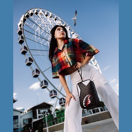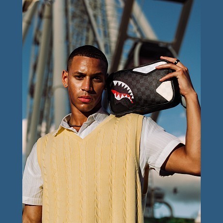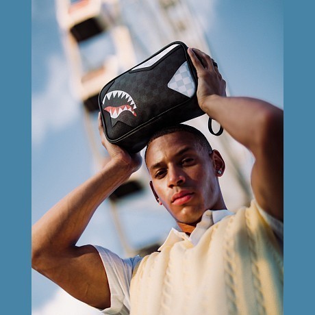 Сумка Sprayground с ярким принтом акулы и клетчатым узором – идеальный аксессуар для мужчин! Изготовлена из 100% поливинилхлорида и подкладки из 100% полиэстера. Клетчатый узор и красочная акула создают уникальный и модный образ. На фотографиях видна прочная ручка и удобная застежка. Качество от бренда из США делает эту сумку отличным выбором для вашего стиля!