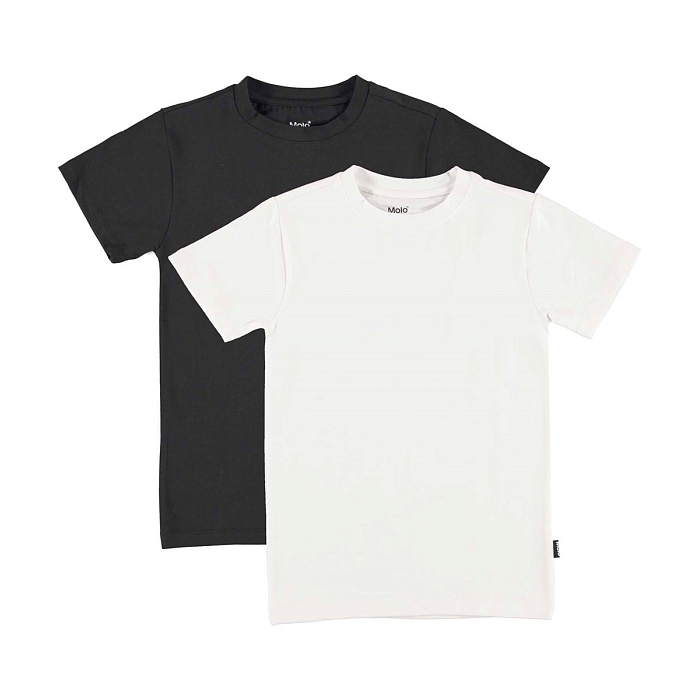 Футболка 2 шт. для мальчиков Molo – это идеальный выбор для вашего ребенка! Изготовленные из 95% натурального хлопка и 5% эластана, они обеспечивают комфорт и свободу движений. Футболки черного и белого цветов идеально подойдут для создания различных образов. На фотографиях видна аккуратная черная окантовка по краю и мягкая текстура ткани. Качество от бренда из Дании и внимание к деталям делают эти футболки отличным выбором для вашего малыша!