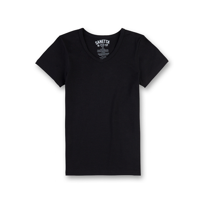 Футболка Sanetta – идеальный вариант для юных модников! Изготовлена из 95% хлопка и 5% эластана, что обеспечивает мягкость и комфорт. Черный цвет подойдет для любого стиля, а эластичная резинка на воротнике обеспечивает удобную посадку. На фотографии видна аккуратная вышивка бренда Sanetta на воротнике и мягкая текстура ткани. Качество от бренда из Германии и внимание к деталям делают эту футболку отличным выбором для вашего ребенка!