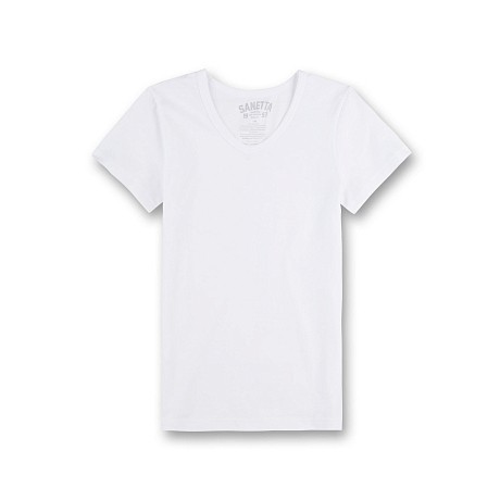 Футболка Sanetta – идеальный вариант для вашего подростка! Изготовлена из 95% хлопка и 5% эластана, она обеспечивает комфорт и свободу движений. Белый цвет подчеркивает классический и элегантный стиль. Футболка с V-образным вырезом и короткими рукавами подойдет для детей в возрасте от 8 до 12 лет. На фото видна аккуратная посадка и качественная ткань без лишних деталей.