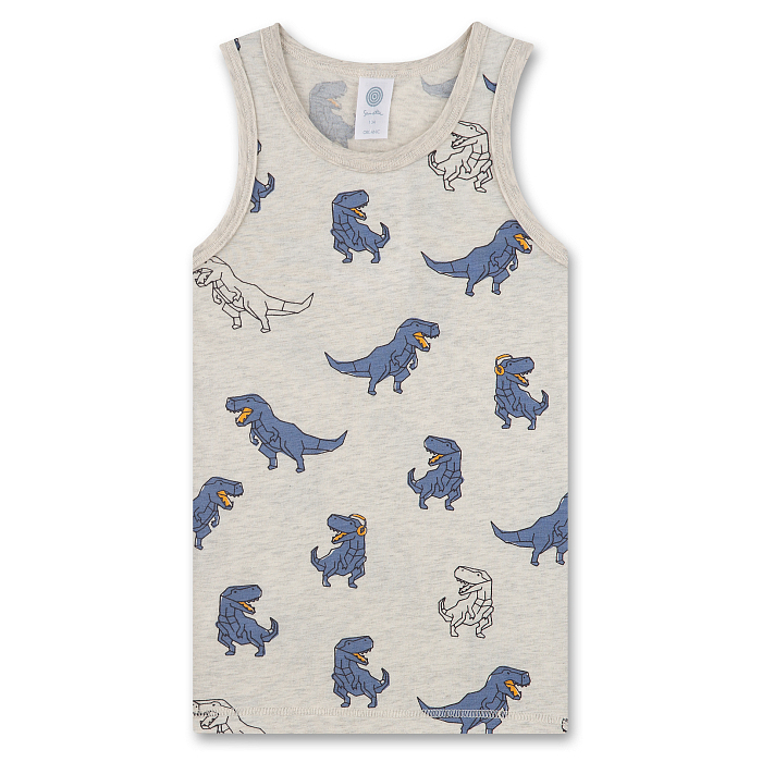 Майка Sanetta – это идеальный выбор для мальчиков 6 лет! Изготовленная из 95% хлопка и 5% эластана, она украшена очаровательными голубыми динозаврами на бежевом фоне. Мягкая и эластичная ткань обеспечивает комфорт и свободу движений, а принт динозавров добавляет игривости и веселья. На фотографии видна аккуратная белая окантовка по краю и удобная посадка. Качество от бренда из США и внимание к деталям делают эту майку отличным выбором для вашего ребенка!