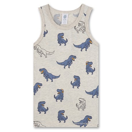 Майка Sanetta – это идеальный выбор для мальчиков 6 лет! Изготовленная из 95% хлопка и 5% эластана, она украшена очаровательными голубыми динозаврами на бежевом фоне. Мягкая и эластичная ткань обеспечивает комфорт и свободу движений, а принт динозавров добавляет игривости и веселья. На фотографии видна аккуратная белая окантовка по краю и удобная посадка. Качество от бренда из США и внимание к деталям делают эту майку отличным выбором для вашего ребенка!