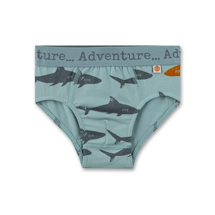 Трусы для мальчиков Sanetta – это идеальный выбор для вашего ребенка! Изготовленные из 95% хлопка и 5% эластана, они украшены очаровательным принтом акул и надписью Adventure. Нежная текстура ткани и удобная посадка делают эти трусы комфортными и стильными. На фотографиях видны акулы разного размера и форма надписи Adventure по краю трусов. Качество от бренда Sanetta и внимание к деталям делают эти трусы отличным выбором для вашего мальчика!