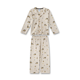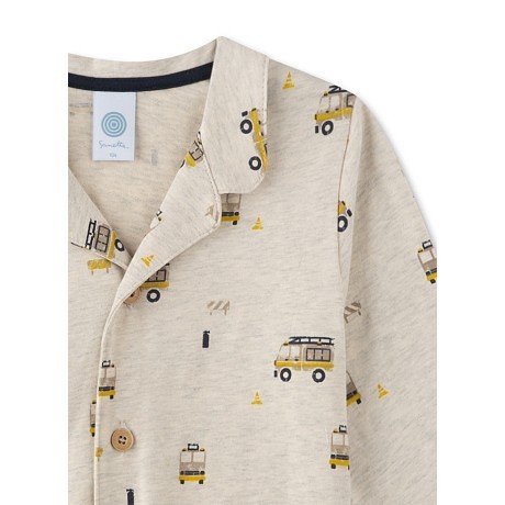 Пижама Sanetta – это идеальный выбор для мальчиков! Изготовленная из 100% хлопка, она украшена очаровательными желтыми автобусами на бежевом фоне. Нежная бежевая основа с яркими желтыми автобусами создает игривое и в то же время уютное настроение. На фотографиях видна удобная застежка на пуговицы и эластичная резинка по низу брюк. Качество от бренда и внимание к деталям делают эту пижаму отличным выбором для вашего ребенка!
