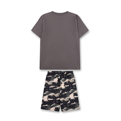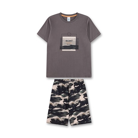 Пижама Sanetta – это идеальный выбор для мальчиков от 10 до 14 лет! Изготовленная из 100% хлопка, она идеально подходит для теплых вечеров и ночных сна. Серый цвет придает модели элегантность и универсальность, а комфортная посадка обеспечивает свободу движений. На передней части футболки виден оригинальный принт с изображением гор и надписью "TRUE-NA". Контрастная оранжевая окантовка по краю воротника добавляет немного яркости. Шорты с камуфляжным принтом и эластичной резинкой на талии обеспечивают удобство и комфорт. Качество от немецкого бренда Sanetta делает эту пижаму отличным выбором для вашего ребенка!