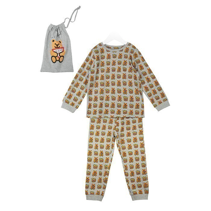 Пижама Guess – это идеальный выбор для мальчиков! Изготовленная из 93% хлопка и 7% полиэстера, она украшена очаровательными медведями на светло-сером фоне. Мягкая и приятная на ощупь ткань создает комфорт и уют для вашего ребенка. На фотографиях видна аккуратная вышивка медведей по всему костюму, а также удобная эластичная резинка на талии и манжетах рукавов и брюк. Качество от бренда из США и внимание к деталям делают эту пижаму отличным выбором для вашего малыша!