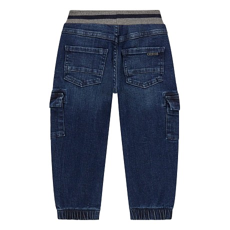 Темно-синие джинсы Guess – это идеальный выбор для мальчиков! Изготовленные из 99% хлопка и эластичного материала, они обеспечивают комфортную посадку. Джинсы украшены практичными карманами на боковых карманах и заднем кармане. На фотографиях видна аккуратная окантовка по краю и мягкая текстура ткани. Качество от американского бренда Guess делает эти джинсы отличным выбором для вашего ребенка!