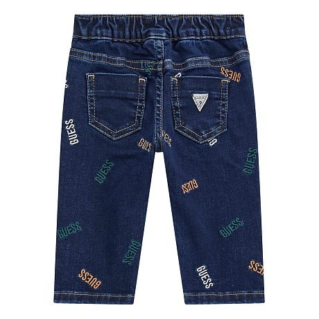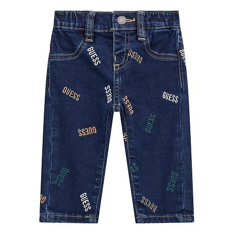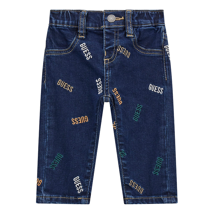 Брюки типа джинсы Guess – это идеальный выбор для мальчиков! Изготовленные из 80% хлопка, они сочетают в себе эластичную посадку и стильный принт с логотипом Guess. Благодаря эластичной резинке на поясе, брюки удобно сидят и не стесняют движений. На фотографиях видны яркие логотипы Guess разного цвета (оранжевый, зеленый) на джинсовой ткани. Нежная текстура ткани и аккуратные швы делают эти брюки отличным выбором для вашего юного модника!