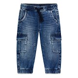 - 🎨 Дизайн: классический синий деним, боковые карманы-карго, эластичный пояс со шнурком и манжеты на низу