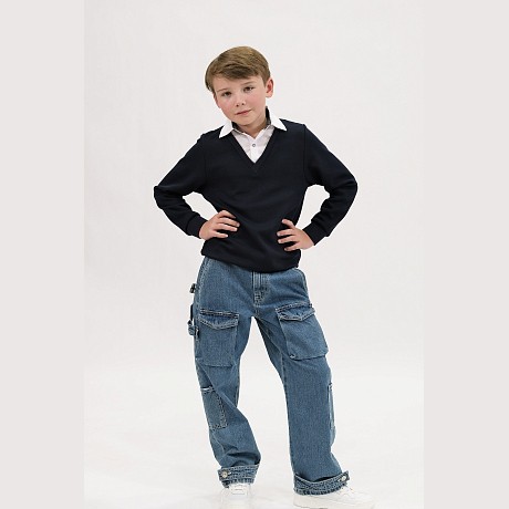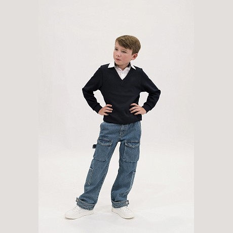 Джемпер для мальчиков Tugi темно-синего цвета с V-образным вырезом