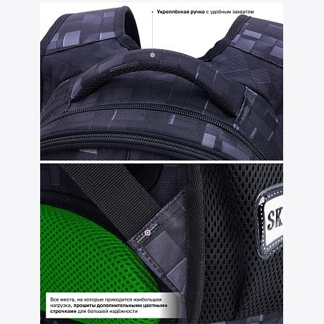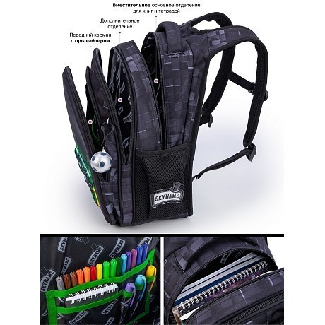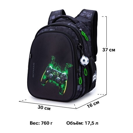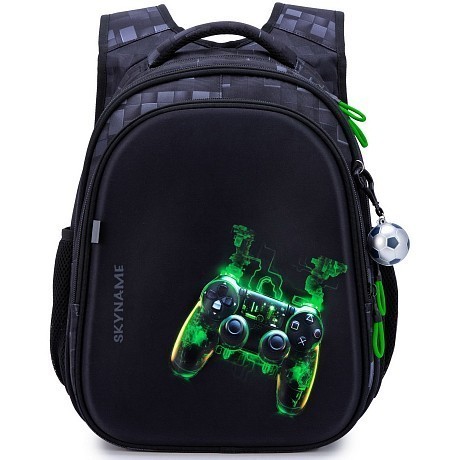 Черный рюкзак SkyName – идеальный выбор для мальчиков! Изготовленный из 100% полиэстера, он украшен зеленым принтом игровой консоли и мячиком-брелок. Удобная посадка, эластичные резинки и прочный материал делают этот рюкзак отличным выбором для вашего ребенка. Быстрая доставка СДЭК по всей России.
