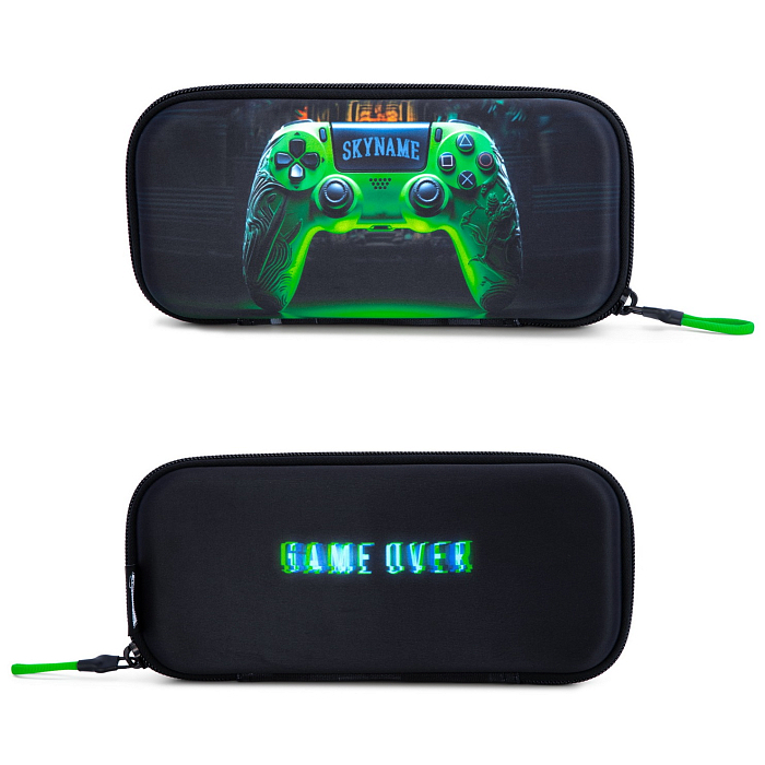 Жесткий пенал SkyName – это идеальный выбор для юных геймеров! Изготовлен из прочного материала 100% этиленвинилацетат/полиэстер, он оформлен ярким принтом контроллера с зелеными кнопками и надписью "SKYNAME". На задней стороне пенала видна надпись "GAME OVER" в зеленых светодиодных буквах. Пенал оснащен удобной молнией и ручкой для переноски. Прочная конструкция и стильный дизайн делают этот пенал отличным аксессуаром для вашего ребенка!