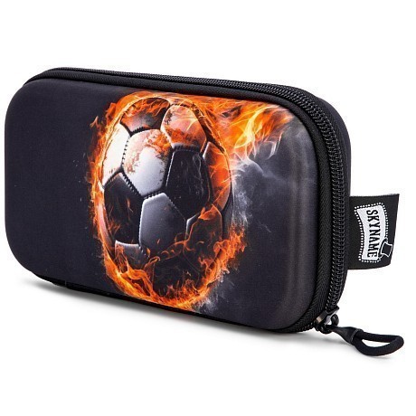 Жесткий пенал SKYNAME – это идеальный выбор для любителей футбола! Изготовлен из прочного материала 100% этиленвинилацетат/полиэстер, он надежно защитит ваши канцелярские принадлежности. На передней стороне пенала изображен футбольный мяч, окутанный огненной пеленой, что создает эффект динамичности и страсти. Внутри пенала много отделений для удобного хранения ручек, карандашей и других канцелярских товаров. Пенал закрывается на удобную молнию, а на задней стороне находится логотип бренда SKYNAME. Этот пенал станет отличным подарком для вашего юного футболиста!
