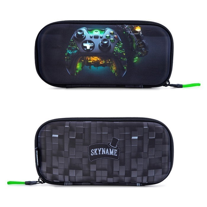 Жесткий пенал SkyName – это идеальный выбор для любителей игр! Изготовлен из прочного материала 100% этиленвинилацетат/полиэстер, он оформлен ярким принтом игровой консоли и контроллера. Материал прочный и долговечный, а принт придает пеналу уникальный и стильный вид. На фотографиях видна аккуратная зеленая резинка на молнии и надпись SkyName с изображением шляпы. Качество от бренда SkyName и внимание к деталям делают этот пенал отличным выбором для вашего ребенка!