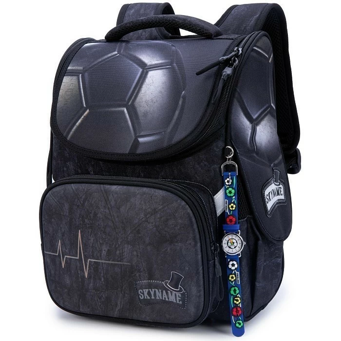 Черный ранец+часы SkyName для мальчиков