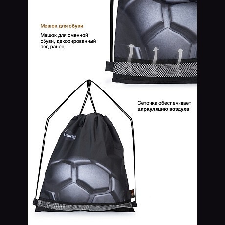 - ⚽ Дизайн: футбольный мяч, удобная ручка, прочные молнии, отдельное отделение для обуви