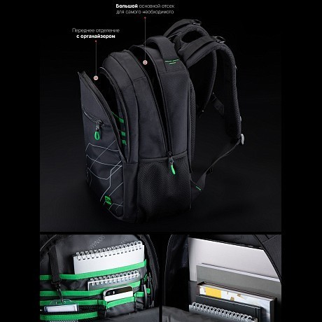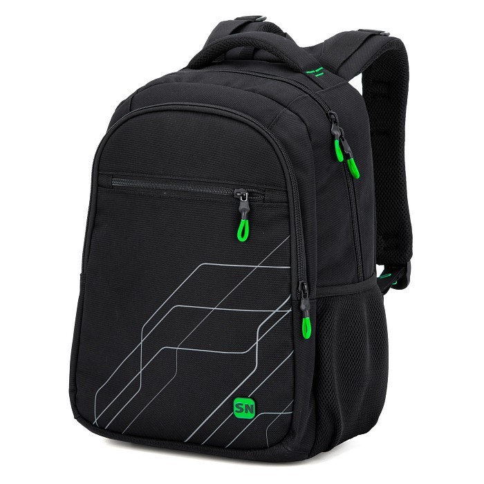 Рюкзак SkyName – это идеальный выбор для юных модников! Изготовлен из прочного 100% полиэстера, он сочетает в себе функциональность и стиль. На передней панели видна яркая зеленая логотипическая вышивка "SN", а также контрастные зеленые молнии и детали. Рюкзак оснащен множеством карманов, включая внешний карман на молнии и внутренний карман для ноутбука. Прочная конструкция и удобная посадка делают этот рюкзак отличным выбором для вашего ребенка!