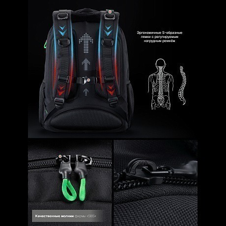 - 🎨 Дизайн: зеленая вышивка "SN", контрастные молнии, много карманов