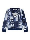 Синий джемпер GUESS – это идеальное сочетание уличного стиля и премиального качества для вашего сына! Изготовленный из 100% хлопка, он обеспечивает отличную терморегуляцию и мягкость при носке. Яркий принт с повторяющимся логотипом бренда в оттенках темно-синего, голубого и белого создает эффектный визуальный образ. Классический крой с круглым вырезом горловины и плотными манжетами подчеркивает спортивный характер вещи.