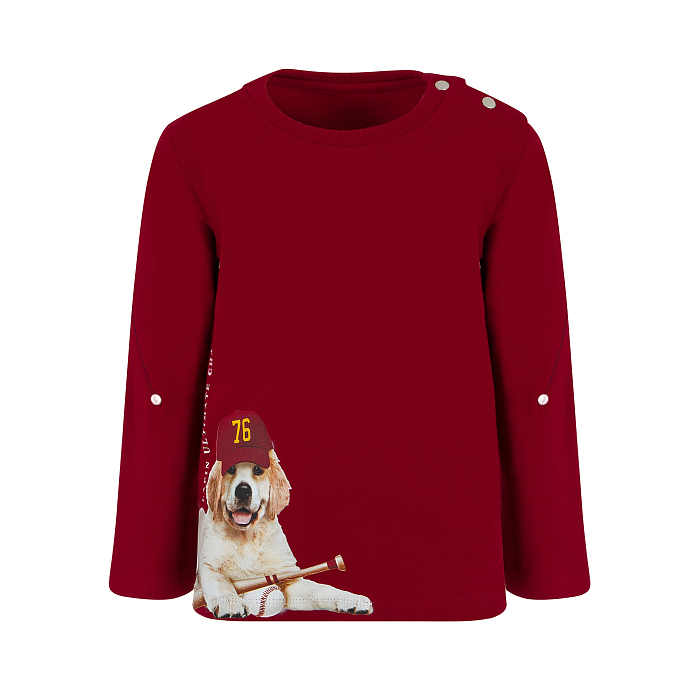 Джемпер Lapin House – это идеальный выбор для мальчиков! Изготовленный из 92% хлопка и 8% лайкры, он украшен очаровательным принтом собаки в бейсбольной форме. Бордовый цвет с яркими акцентами создает стильный и комфортный образ. На фотографиях видна аккуратная окантовка по краю и мягкая текстура ткани. Качество от бренда из Греции и внимание к деталям делают эту модель отличным выбором для вашего ребенка!