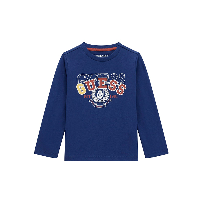 Фуфайка Guess – это идеальный выбор для детей от 3 до 6 лет! Изготовленная из 100% хлопка, она украшена крупным принтом логотипа Guess и надписью "Guess" в стиле эмблемы. Темно-синий цвет создает неповторимый и модный образ. На фотографиях видна аккуратная вышивка логотипа и надписи, а также мягкая текстура ткани. Качество от бренда из США и внимание к деталям делают эту фуфайку отличным выбором для вашего ребенка!