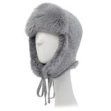 - 🎨 Дизайн: вязаная основа, отделка натуральным мехом кролика (ушки и низ), завязки на подбородок