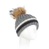 - 🎨 Дизайн: полоски в молочном, сером и черном цветах, меховой помпон