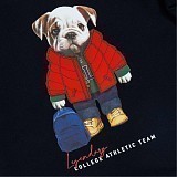 - 🎨 Дизайн: собака в красном пальто, серые меланжевые брюки
