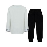 Трикотажный комплект от греческого бренда Lapin House – это идеальное сочетание уюта и моды для активных игр. Молочный джемпер украшен забавным принтом медведя в гоночном костюме с надписью «RACING», создавая яркий акцент образа. В комплекте идут удобные черные брюки с манжетами, которые не сковывают движений. Смесь хлопка и полиэстера делает ткань износостойкой, мягкой и приятной к телу вашего сына.