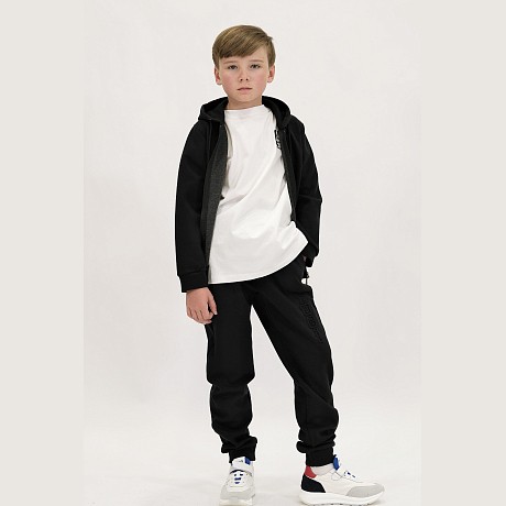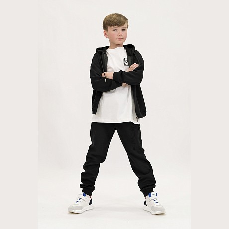 Черный трикотажный комплект для мальчиков (джемпер толстовка+брюки)