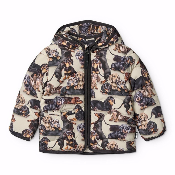 Куртка Molo – это идеальный выбор для мальчиков! Изготовленная из 100% переработанного полиэстера, она украшена забавным принтом с изображением собак. Куртка идеально подойдет для детей от 9 месяцев до 3 лет, обеспечивая комфорт и тепло. Быстрая доставка СДЭК по всей России.