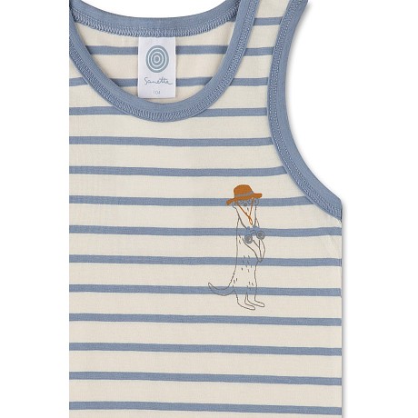 Майка Sanetta – это отличный выбор для мальчиков! Изготовлена из комфорта и эластичности хлопка с добавлением эластана. Милый принт капитана в бело-голубую полоску делает эту майку не только удобной, но и очень модной. Белый фон с голубыми полосами и принтом капитана создают неповторимое сочетание цветов, которое идеально подходит для детей от 4 до 8 лет. Быстрая доставка СДЭК по всей России.